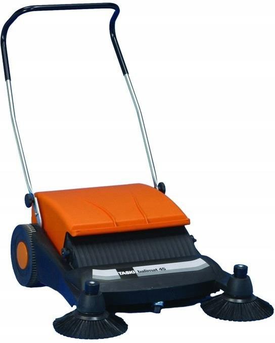 Zajmujemy się sprzedażą urządzeń czyszczących nowych jak i używanych. Maszyny używane wszystkie w perfekcyjnym stanie, przygotowane do pracy jak nowe, w każdej nowy osprzęt i akumulatory. Również gwarancja jak na nowe 12 miesięcy. Dostawy maszyn i szkolenia gratis. Dodatkowo chętnie pomożemy zarówno w dobraniu odpowiedniego urządzenia do zapotrzebowań klienta jak również służymy pomocą w doborze chemii, akcesoriów jak rownież części do maszyn. Współpracujemy z firmami z całego kraju, dojeżdżamy do każdego klienta. Posiadamy profesjonalny serwis, dysponujemy wykwalifikowaną kadrą mechaników oraz odpowiednio wyposażonym warsztatem naprawczym z nowoczesnymi narzędziami diagnostycznymi i naprawczymi, dlatego jesteśmy w stanie szybko i sprawnie usunąć każdą usterkę. Tylko u nas gwarancja zadowolenia. OFERUJEMY NOWĄ ZAMIATARKĘ TASKI BALIMAT 45 PROMOCJA TYLKO 2200 zł. netto Taski Balimat 45 to ręczna zamiatarka, która służy do usuwania luźnych zanieczyszczeń. Doskonale sprawdza się na twardych posadzkach, zarówno wewnątrz, jak i na zewnątrz budynku. Boczne szczotki urządzenia zbierają luźny brud, taki jak piasek, liście, kurz, czy papiery, a następnie kierują go do szczotek głównych, cylindrycznych. Później trafia on do pojemnika na zanieczyszczenia, który wyjątkowo łatwo można wyjąć oraz opróżnić. Szczotki bardzo łatwo się zdejmuje, dzięki czemu ich wymiana nie wymaga specjalistycznych narzędzi bądź pomocy fachowca. Niewielki ciężar maszyny oraz duże kółka sprawiają, że łatwo oraz bez nadmiernego wysiłku fizycznego można nią manewrować. Nieduże gabaryty oraz składana rączka ułatwiają natomiast transport oraz przechowywanie sprzętu. Spora szerokość pracy (80cm z dwoma szczotkami) umożliwia oczyszczenie posadzki do 5 razy szybciej niż za pomocą metody tradycyjnej. Dzięki możliwości regulacji docisku szczotek, sprzątanie staje się jeszcze bardziej precyzyjne oraz skuteczne. Cechy charakterystyczne urządzenia TASKI BALIMAT 45: - nieduża waga (13kg) - niewielkie wymiary (800x660x330mm) - wyposażone w pojemnik na zanieczyszczenia - pojemny zbiornik (40L) - może być stosowany zarówno wewnątrz, jak i na zewnątrz - docisk szczotek jest regulowany - składana rączka ułatwia przechowywanie sprzętu - jest wyjątkowo łatwe w obsłudze - gwarantuje znakomite rezultaty czyszczenia oraz osuszania powierzchni - zawiera elementy, które niezwykle łatwo się zdejmuje oraz zakłada
