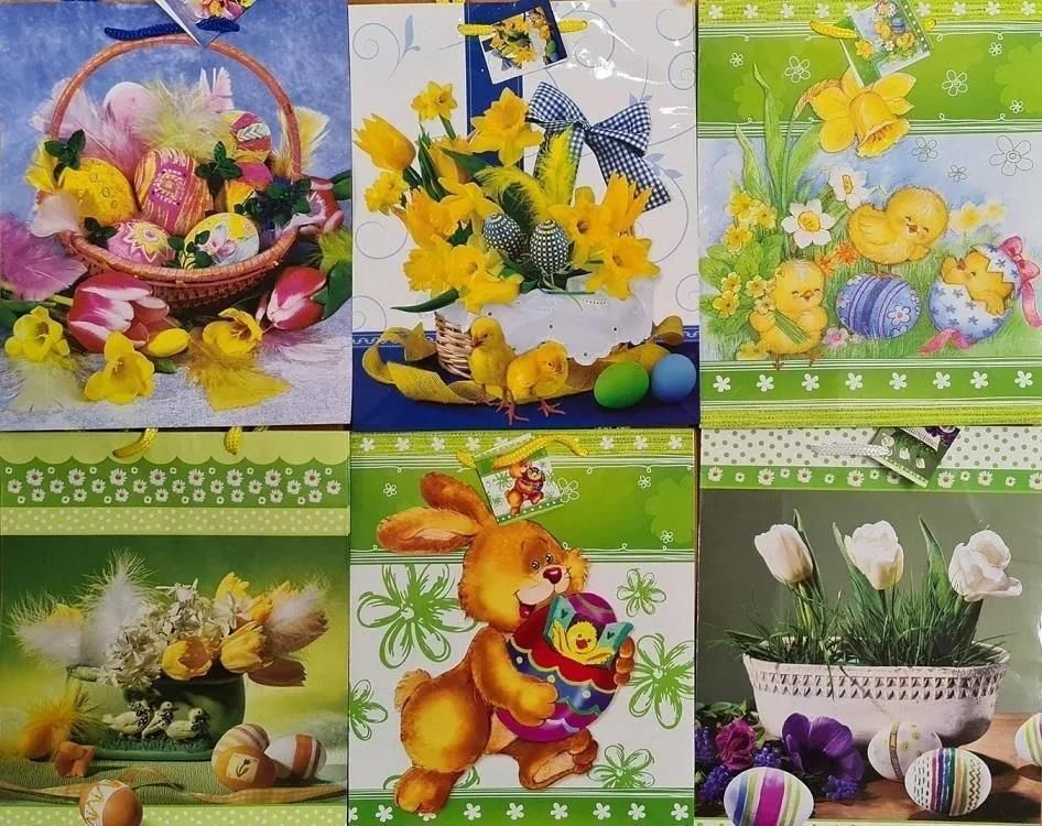 Cechy produktu Torebka ozdobna, laminowana, wielkanocna, średnia PL-6. Uwaga! Wzór wysyłany według dostępności - bez możliwości wyboru. Cena dotyczy 1 sztuki.