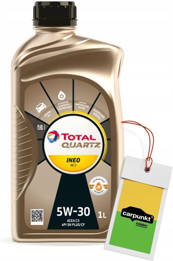 Total Quartz Ineo Mc3 5W30 5L Jest najnowocześniejszym olejem silnikowym stworzonym w Technologii Syntetycznej TOTAL  który jest całkowicie kompatybilny z najnowszymi rozwiązaniami technicznymi zastosowanymi w silnikach benzynowych i Diesla marek MERCEDES-BENZ BMW i VW. Przystosowany do najnowszych systematów oczyszczania spalin. Zastosowanie Zalecany jest do stosowania w silnikach benzynowych i wysokoprężnych najnowszej konstrukcji (produkcja od 2000), w których zastosowano specjalne systemy oczyszczania spalin, umożliwiających spełnienie wymagań normy emisji spalin EURO IV Specjalnie opracowany dla silników grupy MERCEDES-BENZ, BMW Zalecany jest również do samochodów marki Volkswagen, Audi, Seat i Skoda ze stałymi okresami między obsługowymi (QG0, QG2) do silników benzynowych i wysokoprężnych Volkswagena, w których system paliwowy wyposażony jest w pompowtryskiwacze. Do stosowania w jeździe sportowej, miejskiej i po autostradzie, w samochodach osobowych użytkowanych w najtrudniejszych warunkach eksploatacyjnych Właściwości Osiągnie w niektórych przypadkach maksymalnych dopuszczalnych przebiegów pomiędzy wymianami sięgających nawet 30 000 km Dzięki zastosowaniu technologii SAP zapewnia całkowitą kompatybilność z filtrami cząstek (DPF) i katalizatorami utleniającymi Doskonała płynność w niskich temperaturach zapewniająca: łatwy rozruch silnika, natychmiastowe smarowanie i ochronę przed zużyciem współpracujących jego części Bardzo wysoki wskaźnik lepkości zapewniający smarowanie w wysokich temperaturach pracy Wyjątkowa stabilność cieplną i odporność na utlenianie, w połączeniu z doskonałymi właściwościami myjąco-dyspergującymi ogranicza powstawanie laków, nagarów, osadów i szlamów, mogących zanieczyścić wewnętrzne powierzchnie silnika Bardzo wysoka odporność na ścinanie polimerów zastosowanych w składzie oleju, co zapewnia wyjątkową stabilność wskaźnika lepkości podczas wydłużonych przebiegów Szczególnie niska lotność zmniejszającą zużycie oleju w silniku Całkowita neutralność wobec powszechnie stosowanych uszczelek
