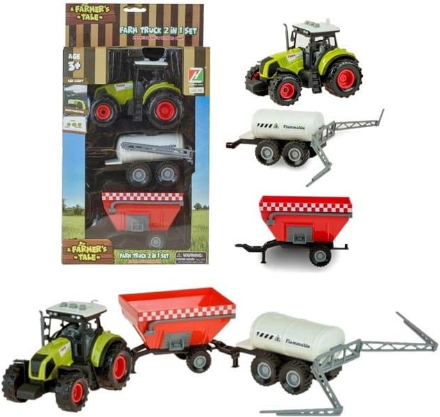 Nowoczesny traktor z zestawem przyczep to zabawka zaprojektowana z myślą o małych Farmerach. Mali chłopcy mają różnego typu autka i traktory, ale ten traktor jest wyjątkowy. Po naciśnięciu przycisków na dachu kabiny włączają się efekty świetlne i dźwiękowe, czyli odgłosy odpalania silnika, cofania …