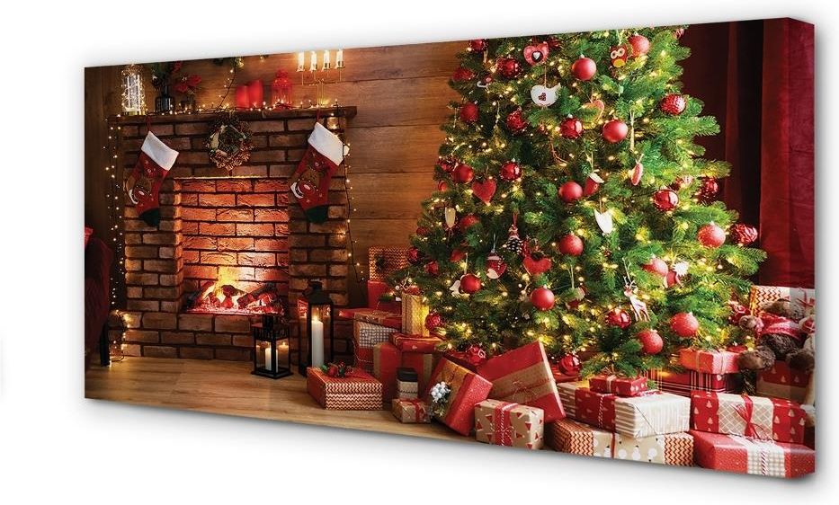 Tulup.Pl Obraz na płótnie Kominek choinka prezenty lampki 120x60 cm (OCH305302024) Bielsko-Biała