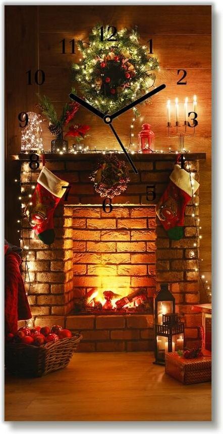 Tulup.pl Zegar ścienny Pionowy-Choinka Święta Kominek Prezent 30x60cm Czarne wskazówki (ZS30X60301005745) Bielsko-Biała