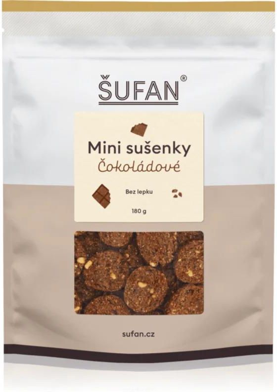 Šufan Mini sušenky Čokoládové, 180 g, Żywność bezglutenowa dla mężczyzn, Właściwości: z wysokiej jakości surowców bez glutenu zawiera czekoladę idealna przekąska w podróży, w pracy i po treningu