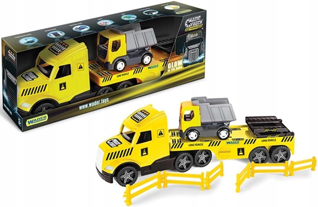 WADER Pojazd Magic Truck - Laweta z wywrotką Wejdź do świata magicznych ciężarówek świecących w ciemności! Magic Truck Technic laweta z wywrotką to duża ciężarówka - laweta z otwartą skrzynią ładunkową o wytrzymałej konstrukcji, realistycznym, nowoczesnym wyglądzie i ciekawej kolorystyce. Rozpali …
