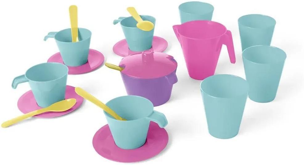 Zestaw naczyń 20 elementów Różowy Opis Zestaw naczyń Party Time spodoba się każdemu miłośnikowi zabaw w gotowanie i organizowanie przyjęć i będzie doskonałym uzupełnieniem dziecięcej kuchni. Zestaw składa się z 20 elementów: dzbanka, cukiernicy z pokrywką, 4 kubków, 4 filiżanek, 4 spodeczków i 5 …