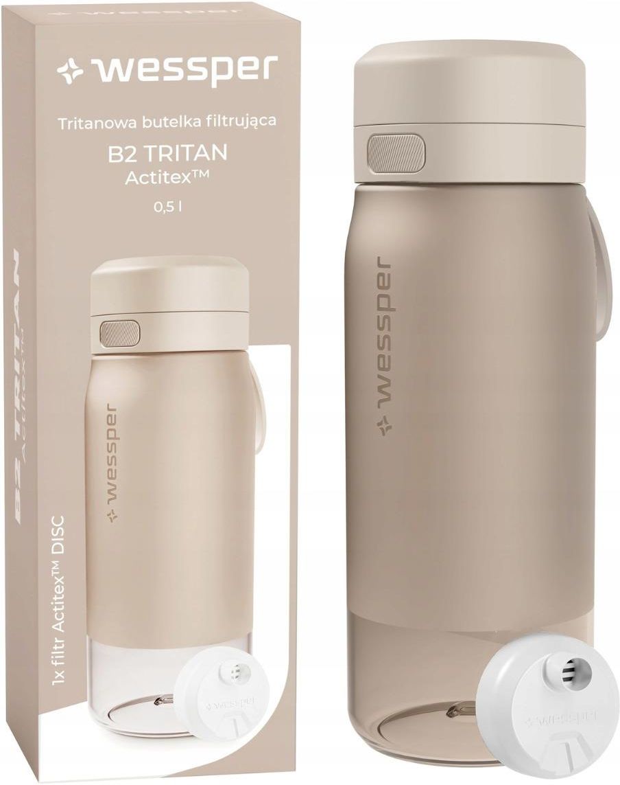 Marka: Wessper Model: B2 TRITAN Actitex™ Typ: Butelka filtrująca Kolor: Beżowa Materiał: Tritan™ Pojemność produktu: 0,5 l Wysokość produktu: 21 cm Średnica produktu: 7,5 cm Średnica wlewu: 5 cm Waga produktu: 0,17 kg 💦 Czysta i smaczniejsza woda zawsze pod ręką Wessper B2 TRITAN Actitex™ to butelka filtrująca premium, zaprojektowana dla osób, które cenią mobilność, wygodę i dobry smak wody - w pracy, na treningu, w podróży czy na uczelni. Dzięki lekkiej, wytrzymałej konstrukcji z Tritanu™, łatwo zabrać ją ze sobą wszędzie, nie obciążając torby czy plecaka. Butelka wyposażona jest w nowoczesny filtr Actitex™ DISC, który eliminuje nieprzyjemny zapach chloru oraz niepożądane substancje, pozostawiając w wodzie naturalne minerały. 💧Filtracja Actitex™ DISC – technologia, która poprawia smak wody i redukuje zanieczyszczenia Butelka Wessper B2 TRITAN wyposażona jest w nowoczesny filtr Actitex™ DISC, oparty na mikroporowatej włókninie węglowej - rozwiązaniu objętym patentem. Dzięki temu filtr jest wyjątkowo gęsty i skuteczny, a przy tym kompaktowy. Jak działa filtr? Redukuje chlor, nieprzyjemny zapach i smak oraz substancje mechaniczne – dzięki mikroporom włókniny węgla, woda jest wyraźnie lepsza w smaku. Zachowuje minerały – filtr nie usuwa ważnych składników naturalnych, co wspiera codzienne nawodnienie i smak. Zapewnia 200 litrów filtrowanej wody lub 30 dni użytkowania. Komfort codziennego użytkowania Szeroki wlot – szybkie napełnianie wodą z kranu i łatwe czyszczenie wnętrza Ustnik bez słomki – umożliwia naturalne, płynne picie bez konieczności zasysania Wbudowany licznik filtra – dyskowy znacznik przypomina o konieczności wymiany wkładu Actitex™, bez aplikacji i bez zapisywania dat Prosty demontaż filtra – łatwe czyszczenie, więcej higieny Pasuje do standardowych uchwytów rowerowych i samochodowych Butelkę (z wyjątkiem filtra) można myć w zmywarce 🛡️ Tritan™ – lekkość, trwałość i bezpieczeństwo Korpus butelki Wessper B2 TRITAN Actitex™ wykonany jest z Tritanu™ — materiału odpornego na uderzenia i zarysowania. Nie chłonie zapachów, nie odbarwia się i długo zachowuje estetyczny wygląd. To tworzywo cenione w medycynie i sporcie – sprawdza się na siłowni, w biurze lub na spacerze. 100% szczelności – bezpieczna w każdej sytuacji Niezależnie od tego, czy wrzucasz ją do torby treningowej, plecaka na wycieczkę czy uchwytu w aucie – butelka Wessper B2 TRITAN Actitex™ pozostaje szczelna w każdej pozycji. Precyzyjnie dopasowana zakrętka zapobiegają przypadkowym wyciekom, dzięki czemu możesz korzystać z niej swobodnie – w ruchu, w pracy, w podróży. Bezpieczne materiały – bez BPA Butelka Wessper B2 TRITAN Actitex™ została wykonana z materiałów dopuszczonych do kontaktu z żywnością i nie zawiera BPA (bisfenolu A). Dzięki temu masz pewność, że codzienne korzystanie z butelki jest bezpieczne i zgodne z obowiązującymi normami. Wessper – czysta wolność Seria butelek B2 Actitex™ to nowa definicja mobilnego nawodnienia. Zdrowa, smaczna woda zawsze przy Tobie – bez jednorazowego plastiku i bez zbędnych kompromisów. 🎯 Najważniejsze cechy produktu: 0,5 litra pojemności Redukuje szkodliwe i niepożądane substancje Szczelne zamknięcie Szeroki wlot + ustnik bez słomki Lekki i odporny Tritan™ Wbudowany licznik wymiany filtra Komponenty wolne od Bisfenolu A (BPA Free) Można myć w zmywarce Wessper to polska marka specjalizująca się w filtracji wody i akcesoriach do jej codziennego użytkowania. W ofercie znajdują się zarówno nowoczesne filtry, funkcjonalne dzbanki, jak i stylowe butelki.Dzięki technologicznej precyzji, dbałości o detale i świadomemu projektowaniu, Wessper wspiera codzienne nawyki związane z nawodnieniem – z korzyścią dla zdrowia, wygody i środowiska.