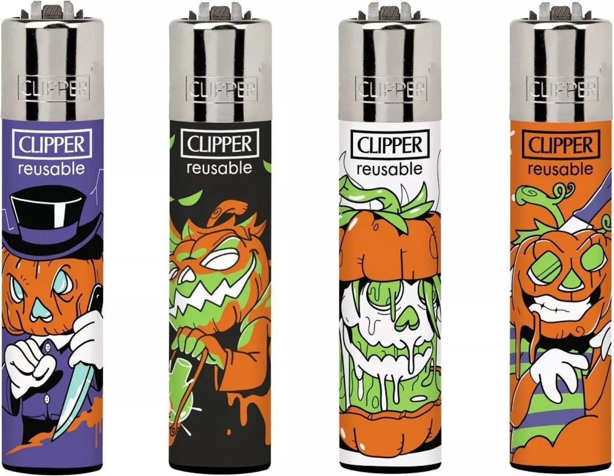 Zapalniczka Clipper wzór TERROR PUMPKINS Zapalniczka Clipper Classic we wzorze TERROR PUMPKINS. 4 nadrukie w klimacie Halloween do wyboru. Clippery posiadają wymienny krzemień oraz wyjmowany ubijak. 1 ładowanie gazem umożliwia 3000 uruchomień.