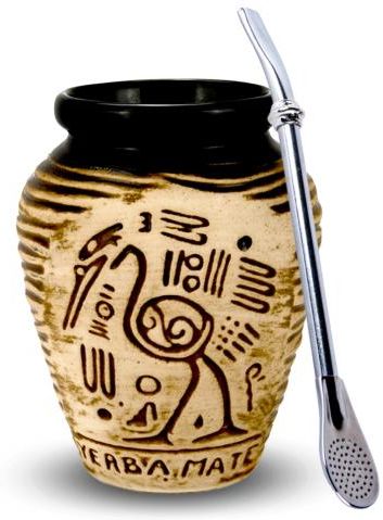 Matero Ceramiczne AZTEK Brąz Miodowe do Yerba Mate Artystycznie naczynko z ceramiki o oryginalnym kształcie. Idealne matero do Twojej ulubionej yerba mate. To wyjątkowe naczynko jest zdobione azteckimi tłoczeniami oraz napisem yerba mate. Jego kształt sprawia, iż bardzo dobrze leży w dłoni. …
