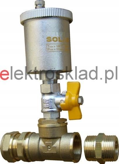 11. Odpowietrznik solarny na trójniku odporny do 180 stC z nyplem systemowym Bieruń