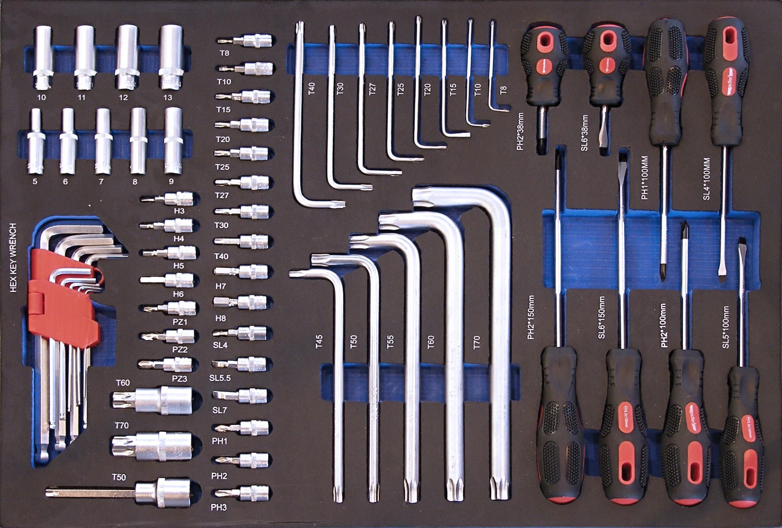 PROFESJONALNA SZAFKA NARZĘDZIOWA Z WYPOSAŻENIEM 217 ELEMENTÓW + PODNOŚNIK SCHMITH 2T Opis produktu: Wysokiej jakości wózek narzędziowy. Metalowe ścianki wzmocniono narożnikami z tworzywa. Wózek wyposażony w 7 pojemnych szuflad na masywnych prowadnicach. Wbudowany zamek na kluczyk, blokujący wszystkie szuflady. Duże koła z hamulcem. W czterech szufladach znajduje się łącznie 217 elementów wyposażenia. Całe wyposażenie zostało wykonane ze wzmocnionego stopu stali narzędziowej Cr-V (Chromowo - wanadowej) Trzy dolne szuflady pozostają do Państwa dyspozycji. Wózek posiada gumowane rączki. Duży blat roboczy z trzema kieszonkami i sześcioma otworami na śrubokręty. Podnośnik żaba Schmith SPH-2 Udźwig 2 t – 2000 kg Praca w przedziale 130-345 mm zależna od obciążenia w danej pozycji Waga urządzenia 9,6 kg Wygodne kółka ułatwiające przemieszczanie pod pojazdem (przednie masywne, tylne skrętne łożyskowe) Zawór spustowy zintegrowany z zaworem bezpieczeństwa Oparty o zasadę działania dźwignika ramieniowego z napędem hydraulicznym działającym w osi poziomej Rączka obrotowa 360 st Zestaw 47 szt. kluczy nasadowych z chwytem 1/4”: Nasadki: 4; 4,5; 5; 5,5 ; 6; 7; 8; 9; 10; 11; 12; 13; 14 mm Przegub uniwersalny, pokrętło poprzeczne Przedłużki: 50 mm oraz 100 mm Pokrętło zapadkowe oraz rękojeść wkrętakową Złączka na bit sześciokątny duży Torx długi: T20, T25, T30, T40, T45, T50 Torx krótki z dziurką: T20, T25, T30, T40, T45, T50, T55 Torx krótki: T8, T9, T10, T15, T20, T25, T27, T30, T40 Zestaw nasadek Torx wewnętrzny: E4, E5, E6, E7, E8 Zestaw 31 szt. kluczy nasadowych z chwytem 3/8”: Nasadki sześciokątne: 6, 7, 8, 9, 10, 11, 12, 13, 14, 15, 16, 17, 18, 19, 20, 21, 22 mm Nasadki do świec: 16 i 21 mm Zestaw nasadek Torx wewnętrznych: E10, E11, E12, E14, E16, E18, E20 Przegub uniwersalny Pokrętło poprzeczne Przedłużki: 75 mm oraz 150 mm Pokrętło zapadkowe Zestaw 27 szt. kluczy nasadowych z chwytem 1/2”: Nasadki sześciokątne: 8, 10, 11, 12, 13, 14, 15, 16, 17, 18, 19, 20, 21, 22, 23, 24, 26, 27, 28, 30, 32 mm Złączka na bit sześciokątny duży Przegub uniwersalny Pokrętło poprzeczne Przedłużki 125 mm i 250 mm Pokrętło zapadkowej Zestaw 17 szt. kluczy płasko-oczkowych o wymiarach od 6 mm do 22 mm Zestaw 8 szt. kluczy oczkowych giętych: 6x7, 8x9, 10x11, 12x13, 14x15, 16x17, 18x19, 20x22 mm Zestaw 10 szt. kluczy płaskich dwustronnych: 6x7, 8x9, 10x11, 12x13, 14x15, 16x17, 18x19, 20x22, 24x27, 30x32 mm Zestaw 8 wkrętaków: płaskie : 6x38, 5x100, 4x100, 6x150 mm krzyżowe : 6x38, 5x100, 6x100, 6x150 mm Zestaw 13 kluczy imbusowych typu Torx: T8, T10, T15, T20, T25, T27, T30, T40, T45, T50, T55, T60, T70 Zestaw 42 elementów składających się z: 10 szt. kluczy trzpieniowych kątowych z kulką - długich: 1,5 ; 2; 2,5; 3 ; 4 ; 5; 5,5; 6; 8; 10 mm nasadek 1/4” długa 5, 6, 7, 8, 9, 10, 11, 12, 13 mm nasadek1/2” Torx: T50, T60, T70 końcówek wkrętakowych płaskich 4; 5,5; 7 końcówek wkrętakowych krzyżowych PH 1, PH 2 , PH 3, PZ 1, PZ 2, PZ 3 końcówek typu Torx T8, T10, T15, T20 , T25, T27, T30, T40 końcówek imbusowych sześciokątnych: 3, 4, 5, 6, 7,8 mm Młotek warsztatowy 300g z trzonkiem z włókna szklanego Pobijak plastikowy z trzonkiem z włókna szklanego Zestaw przecinaków: 16, 18, 24 mm Zestaw szczypiec: Szczypce płaskie 175 mm, Szczypce z cięciem bocznym 175 mm Kombinerki 200 mm Szczypce uniwersalne 250 mm Szczypce nastawne 250 mm Kupując otrzymujesz: 1 x PROFESJONALNY WÓZEK / SZAFKA NARZĘDZIOWA Z WYPOSAŻENIEM 217 ELEMENTÓW 1 x PODNOŚNIK ŻABA SCHMITH SPH-2:
