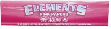 Bibułki Elements Pink King Size Slim różowe Bletki Elements Pink w rozmiarze KS Slim. Delikatnie różowe. Posiadają powłokę z gumy cukrowej, co zapewnia wolne, równomierne spalanie i karmelizowaną nutę smakową. 32 szt. w opakowaniu.