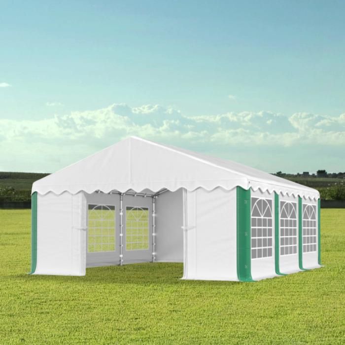 Namiot imprezowy o solidnej konstrukcji. Łatwy w montażu. Dzięki temu oprócz szybkiego rozkładania, namiot bardzo łatwo można przenosić w dowolne miejsce. Poszycie sprawdzi się świetnie podczas organizacji każdego plenerowego eventu, bankietu czy festynu. Stanowi idealną ochronę cateringu oraz zaproszonych gości podczas wesela, komunii, pikników oraz innych imprez okolicznościowych. Swoje zastosowanie znajdzie także jako altana, namiot ogrodowy bądź tarasowy. Namiot można używać również jako powierzchnie handlowe oraz dodatkowe miejsce w swoim lokalu.