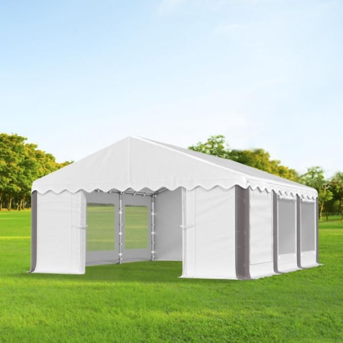 Namiot imprezowy o solidnej konstrukcji. Łatwy w montażu. Dzięki temu oprócz szybkiego rozkładania, namiot bardzo łatwo można przenosić w dowolne miejsce. Poszycie sprawdzi się świetnie podczas organizacji każdego plenerowego eventu, bankietu czy festynu. Stanowi idealną ochronę cateringu oraz zaproszonych gości podczas wesela, komunii, pikników oraz innych imprez okolicznościowych. Swoje zastosowanie znajdzie także jako altana, namiot ogrodowy bądź tarasowy. Namiot można używać również jako powierzchnie handlowe oraz dodatkowe miejsce w swoim lokalu.