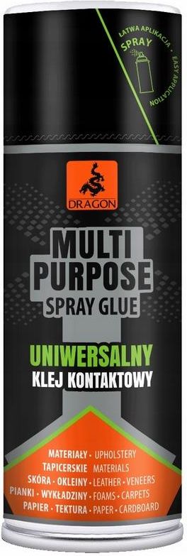 Dragon Multi Purpose Spray Glue uniwersalny klej kontaktow 400 ml Bezbarwny KLEJ UNIWERSALNY KONTAKTOWY SPRAY 400ML WODOODPORNY DRAGON Może być stosowany przy pracach tapicerskich oraz do przyklejania wykładzin dywanowych. Idealnie nadaje się do zastosowań, w których nakładanie konwencjonalnych …