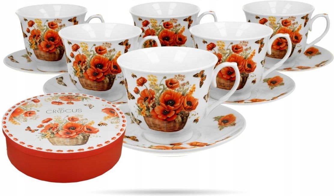 Filiżanka ze spodkiem retro Kosze kwiatów Maki 250 ml zestaw 6 szt DUO Kod Produktu SKU: DU4469 Filiżanka ze spodkiem retro Kosze kwiatów Maki 250 ml zestaw 6 szt DUO Filiżanki retro zdobione kolorowym motywem maków w wiklinowym koszu. Ciekawy kształt retro, praktyczna pojemnność. Wykonane z porcelany New Bone China - lekkiej, ale także mocnej i trwałej. Zalety produktu filiżanki zdobione kolorową grafiką polnych maków w wiklinowym koszu wygodne, stabilne, mają praktyczną pojemność - idealne filiżanki do kawy herbaty, ozdobny kształt retro dodaje uroku wykonane z porcelany New Bone China - lekkiej i mocnej, w charakterystycznym, kremowym odcieniu zapakowane w kolorowe pudełko z motywem przewodnim - gotowy pomysł na prezent można myć w zmywarce, stosować w mikrofali Cechy produktu Producent: DUO Seria: CROCUS Pojemność: 250 ml (pojemność maksymalna) Średnica: 9,2 cm Wysokość: 7,5 cm Spodek: 13,7 cm Zmywarka, mikrofala: tak Opakowanie: ozdobny karton Zestaw składa się z 6 filiżanek, 6 spodków i ozdobnego kartonu z motywem Filiżanka ze spodkiem retro Kosze kwiatów Maki 250 ml zestaw 6 szt DUO SKU: DU4469 Filiżanki retro DUO - Kosz kwiatów maki. Filiżanki do kawy herbaty, które zachwycą każdego miłośnika naturalnych motywów. Zdobione grafiką polnych maków w wiklinowym koszu. Kształt filiżanek retro. Zapakowane w ozdobne pudełko stanowią świetny pomysł na prezent. Materiał: porcelana Pojemność: 250 ml (pojemność maksymalna) Średnica: 9,2 cm Wysokość: 7,5 cm Spodek: 13,7 cm Zmywarka, mikrofala: tak Zestaw składa się z 6 filiżanek, 6 spodków i ozdobnego kartonu z motywem Podane wymiary oraz pojemności podawane są zgodnie z opisem producenta. Najczęściej pojemność podana to pojemność całkowita, może się różnić od pojemności użytkowej.
