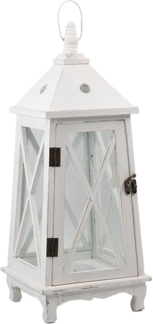 Eltom Biały Drewniany Lampion Świeca Do Pokoju Ogrodu L 15756 Bieruń
