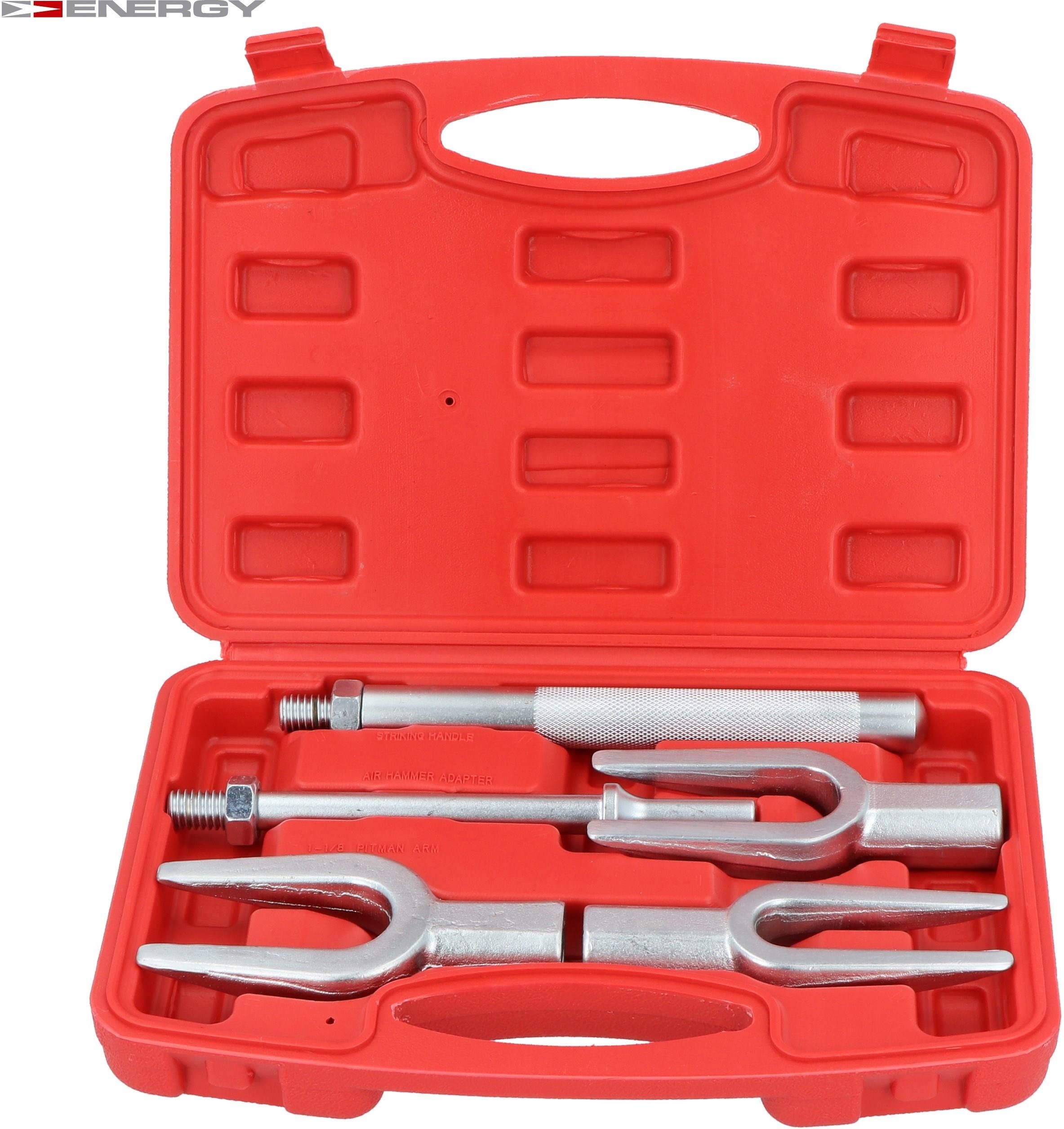 ŚCIĄGACZE DRĄŻKÓW KIEROWNICZYCH 5 el. NR KATALOGOWY NE00008 Zestaw 5-elementowy ściągaczy drążków kierowniczych stosowany może być do każdego rodzaju samochodów osobowych i dostawczych. Ściągacz dostosowany jest do pracy z młotkiem pneumatycznym lub ręcznym.