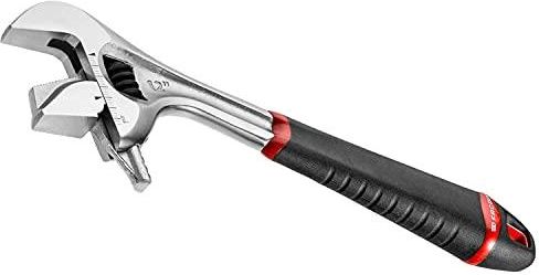 Klucz nastawny szwedzki 201 mm z odwracaną szczęką, Facom [101.8GR]: klucz nastawny w wersji GR - z odwracaną szczęką: z jednej strony szczęka jest płaska i umożliwia użycie klucza w sposób tradycyjny, bez uszkadzania obrabianych elementów. Z drugiej strony szczęka ma drobne ząbki umożliwiające …