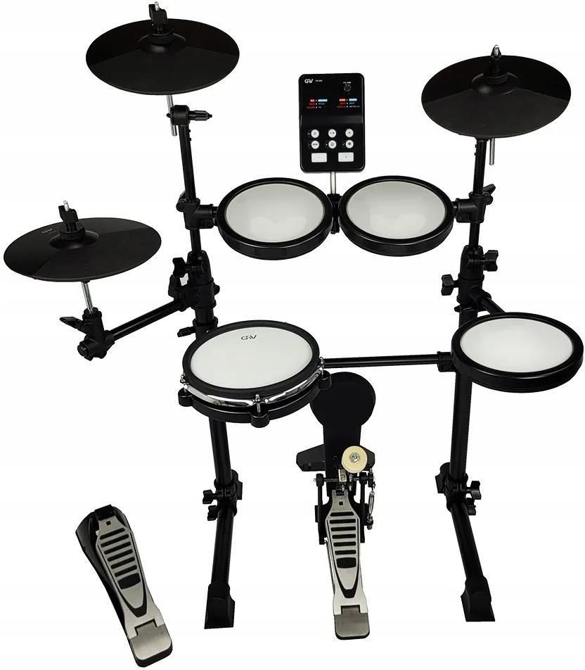 GRV VR-90X perkusja elektroniczna Zestaw perkusji elektronicznej GRV VR-90X to bezkonkurencyjna propozycja w swoim przedziale cenowym, oferująca funkcje i jakość zarezerwowaną zwykle dla droższych modeli. Każdy element zestawu został starannie zaprojektowany, aby zapewnić jak najbardziej naturalne wrażenia z gry. Wszystkie tomy i werbel wyposażono w siateczkowe naciągi, które gwarantują realistyczny i czuły odbiór uderzeń, zbliżony do gry na akustycznym zestawie. Dodatkowo, pad werbla jest dwustrefowy, dziękli czemu możesz grać rim shot'y podczas ćwiczeń oraz wykorzystywać je w utworach. W zestawie znajduje się także pad stopy wraz z mechanizmem, który oferuje naturalne odczucie pracy pedału, co jest rzadkością w tym przedziale cenowym. Konkurencyjne modele często zastępują pełen mechanizm jedynie czujnikiem, co znacznie odbiega od realistycznego doświadczenia gry. 6" pad stopy zapewnia kompatybilność z standardowym mechanizmem podwójnej stopy dostępnym na rynku. Solidna rama zestawu GRV VR-90X zapewnia stabilność i trwałość podczas intensywnej gry. Sercem zestawu jest moduł perkusyjny z imponującą liczbą 209 wysokiej jakości próbek dźwiękowych. Moduł oferuje 20 gotowych presetów zestawów perkusyjnych, 50 podkładów muzycznych z możliwością wyciszenia partii perkusyjnych, a także wbudowany metronom z funkcją TapTempo i regulacją głośności. Moduł VR-90X jest niezwykle wszechstronny, oferując szeroką gamę opcji personalizacji, takich jak Song Level, Play Mode, Trigger (z ustawieniami Gain, Threshold, Sensitivity, Curve, Mask Time, Head/Rim Modifier, Auto-CrossTalk, Pedal Calibration) oraz funkcję automatycznego wyłączania (Auto PowerOff). Dodatkowo, posiada funkcję nagrywania, co jest przydatne zarówno podczas ćwiczeń jak i sesji z zespołem. Zestaw oferuje również bogate opcje podłączeń, w tym wyjście słuchawkowe, wyjście "Line Out” do podłączenia zewnętrznego głośnika, oraz „Line In” umożliwiające podłączenie telefonu, laptopa czy innego urządzenia, co pozwala na grę do ulubionych podkładów muzycznych prosto z YouTube. Co więcej, moduł jest jednym z pierwszych na rynku, który zasilany jest za pomocą nowoczesnego gniazda USB-C, co czyni go jeszcze bardziej funkcjonalnym i wygodnym w użytkowaniu. Gniazdo służy również do przesyłania danych. Konfiguracja 3x Mesh Tom 8" Mesh Snare 8" (dwustrefowy werbel) Crash Cymbal 10" Ride Cymbal 10" Hi-Hat Cymbal 10" Kick Pad 6" Mechanizm stopy Hi-Hat Control Pedal Solidna rama wraz z ramionami zestaw akcesoriów (pałki, ściereczka, śrubokręt, paski rzepowe do kabli oraz klucz perkusyjny) Parametry modułu 20 gotowych, profesjonalnie brzmiących zestawów 209 brzmień bębnów, talerzy i perkusjonalii 50 wbudowanych podkładów muzycznych z funkcją Drum Mute Wbudowany metronom z funkcjami:-On/Off-Regulacja głośności-Beat-TapTempo Możliwość nagrywania do 10 utworów Dostępne ustawienia modułu:-Song Level-Play Mode-Trigger (Gain, Threshold, Sensivitiy, Curve, Mask Time, Head/Rim Modifier, Auto- CrossTalk, Pedal Calibration)-Auto PowerOff-Reset wyświetlacz LED Sound Effect (Reverb) USB-C (wyjście/wejście/zasilanie) - możliwość podłączenia do komputera Wyjście słuchawkowe Jack 3,5 mm Wejście Line In Jack 3,5 mm (podepnij swój telefon lub sprzęt audio i graj do podkładów) Wyjście Line Out Jack 6,3mm (do podpięcia głośnika/miksera)