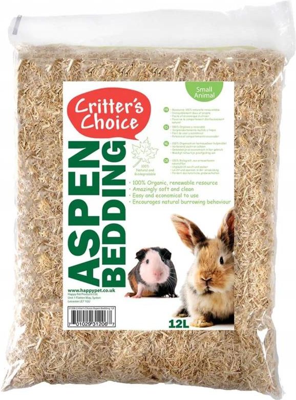 Podłoże Aspen Bed jest specjalnie zaprojektowane do hodowli gryzoni małych i dużych i innych zwierząt, w tym kopiących. Posiada unikalny kształt w postaci długich i miękkich włókien drzewa, co nie stwarza zagrożenia dla zwierząt. Znacznie ułatwia poruszanie się oraz kopanie nor. Aspen Bed ma postać długich i cienkich wiórków. Taka struktura ułatwia pełzanie oraz kopanie. Wykopane norki utrzymują swoje kształty, a dodatkowo posiadają właściwości izolujące, utrzymując ciepło wewnątrz norki doskonale dogrzewając zwierzę i stwarzając bezpieczną kryjówkę. Podłoże Aspen Bed jest naturalnym produktem nie zawierającym żadnych składników chemicznych. Zostały odpowiednio odpylone, nie podrażniając oczy zwierząt w nim przebywających. Dzięki swojej porowatej strukturze intensywnie wchłania wilgoć (do 190% swojej wagi) i brzydkie zapachy, co prowadzi do utrzymywania świeżości i czystości w klatce przez długi czas. Jest podłożem wydajnym, oszczędnym i nieszkodliwym dla otaczającego środowiska. Ponadto podłoże to stanowi wspaniałą dekorację, imitując jednocześnie naturalne środowisko dla ich mieszkańców. Odpowiednio dobrane podłoże pozytywnie wpływa na prawidłowe i naturalne zachowywanie się zwierząt. Nie stanowi zagrożenia dla zwierząt nawet w przypadku połknięcia. Opakowanie zawiera: - 12 litrów włókien topoli