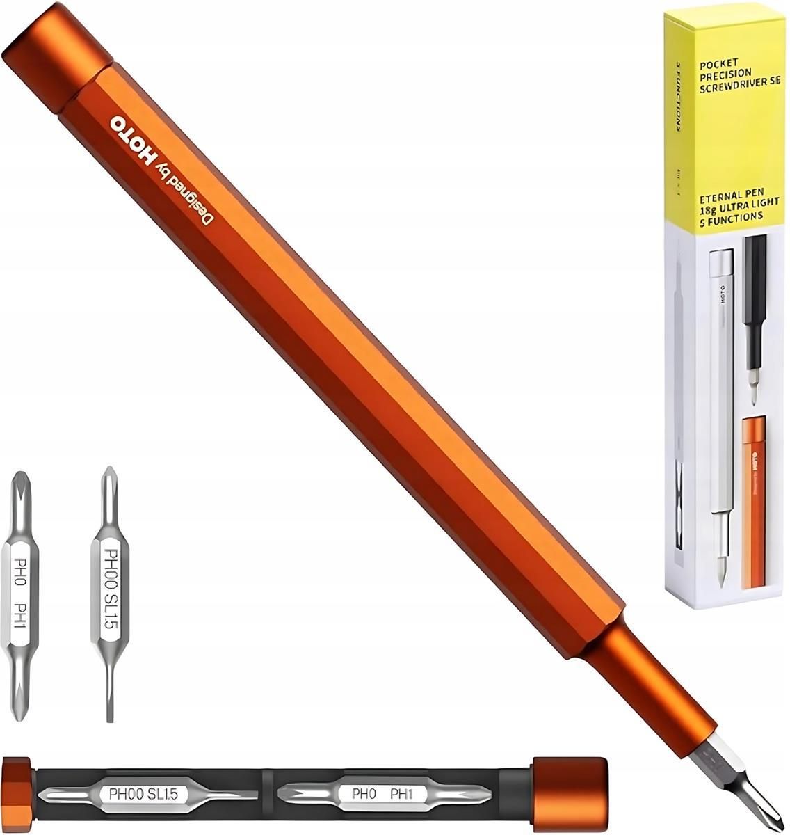 KIESZONKOWY WKRĘTAK PRECYZYJNY HOTO RĘCZNY I DŁUGOPIS WIECZNY 5W1 ŚRUBOKRĘT Kieszonkowy wkrętak precyzyjny i długopis wieczny 5 w 1 HOTO QWLSD013 (czerwony) Kieszonkowy wkrętak precyzyjny i długopis wieczny 5 w 1 HOTO QWLSD013 to wyjątkowe narzędzie, które łączy funkcjonalność z elegancją. Wykonany z wysokiej jakości aluminium klasy lotniczej, stanowi doskonałe połączenie wyrafinowanego designu i wytrzymałości. Jego smukła, przypominająca ołówek forma sprawia, że jest nie tylko praktycznym, ale i stylowym dodatkiem do każdej kolekcji narzędzi. Specyfikacja Nazwa: Kieszonkowy wkrętak precyzyjny i długopis wieczny 5 w 1 HOTO QWLSD013 (Czerwony) Producent: HOTO Model: QWLSD013 Materiał: Aluminium, Stal Wymiary produktu: φ10x17mm Masa netto: Około 18 g Maksymalny ręczny moment obrotowy: 1N-m W zestawie znajdują się Wkrętak x1 Końcówka piórkowa x1 Podwójne głowice x2 (+PH0, +PH00, +PH1, SL1.5) Zalety Wielofunkcyjność: Łączy funkcje wkrętaka precyzyjnego z długopisem wiecznym, co czyni go praktycznym narzędziem na co dzień. Wysokiej jakości materiały: Wykonany z aluminium klasy lotniczej, co zapewnia zarówno wytrzymałość, jak i elegancki wygląd. Kompaktowy design: Smukła, przypominająca ołówek forma sprawia, że jest łatwy do przenoszenia i doskonale mieści się w kieszeni lub torbie. Zestaw bitów: Wyposażony w pięć podstawowych bitów, które pokrywają 90% codziennych potrzeb naprawczych. Innowacyjny schowek na bity: Magnetyczny schowek zapewnia łatwy dostęp i bezpieczne przechowywanie bitów, zabezpieczając je przed zgubieniem. Trwałość: Bity wykonane ze stali stopowej S2 o twardości 60HRC zapewniają odporność na rdzę i długowieczność. Wielofunkcyjność na co dzień Wkrętak ten jest wyposażony w pięć podstawowych bitów, które pokrywają 90% codziennych potrzeb naprawczych. Idealny do drobnych napraw w domu, pracy czy podczas podróży, doskonale sprawdzi się przy naprawie elektroniki, okularów czy innych drobnych przedmiotów. Dzięki swojej kompaktowej formie i niewielkiej wadze zawsze można mieć go pod ręką, gotowego do użycia w każdej sytuacji. Wkrętak i długopis w jednym Produkt ten pełni także funkcję długopisu wiecznego, oferując wymienny, miękki wkład ołówkowy, zaprojektowany do lekkiego użytkowania i długiego pisania. To idealne rozwiązanie dla osób, które cenią sobie praktyczność i wszechstronność narzędzi, jednocześnie nie rezygnując z estetyki. Dzięki tej funkcji HOTO QWLSD013 staje się niezastąpionym kompanem zarówno w biurze, jak i w podróży. Ukryte magazynowanie bitów Wkrętak wyposażony jest w innowacyjny, magnetyczny schowek na bity, który umożliwia łatwy dostęp i bezpieczne przechowywanie elementów. Precyzyjnie zaprojektowany system magazynowania zapewnia, że bity są zawsze na swoim miejscu, gotowe do użycia, a jednocześnie zabezpieczone przed zgubieniem. Precyzja i trwałość Dzięki zastosowaniu stali stopowej S2 o twardości 60HRC, narzędzie to zapewnia wyjątkową trwałość i odporność na rdzę, co gwarantuje długowieczność każdego bita. Konstrukcja z wykorzystaniem precyzyjnej obróbki CNC i wieloetapowego anodowania dodatkowo podkreśla jego wytrzymałość i elegancki wygląd. To narzędzie, które nie tylko doskonale spełnia swoje funkcje, ale także cieszy oko swoją estetyką. Doskonały towarzysz w podróży HOTO QWLSD013 to nie tylko wkrętak, ale i doskonały towarzysz w podróży. Jego lekka, smukła konstrukcja sprawia, że idealnie mieści się w kieszeni czy torbie, będąc zawsze pod ręką w razie potrzeby drobnych napraw. Dzięki temu gdziekolwiek jesteś, zawsze możesz polegać na jego funkcjonalności i niezawodności.