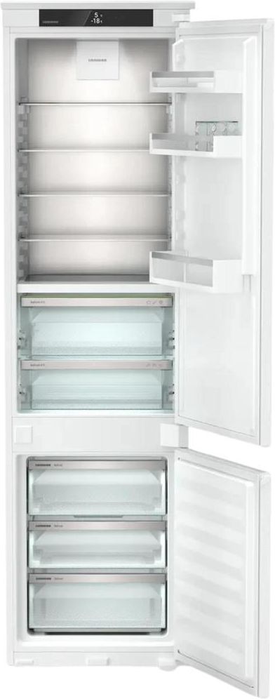 Karta produktu Fruit & Vegetable-Safe Krucha sałata lub truskawki: najbardziej delikatne artykuły spożywcze zasługują na specjalne miejsce, aby mogły pozostać dłużej świeże: komory BioFresh-Safe. W pojemniku „Fruit & Vegetable-Safe” temperatura jest bliska 0°C. W połączeniu z panującą tam stale wilgotnością powietrza, dzięki szczelnemu zamknięciu, niezapakowane owoce i warzywa czują się tam szczególnie dobrze. Nie ma potrzeby ustawiania czegokolwiek. Meat & Dairy-Safe Chcesz zachować jak najdłużej świeżość delikatnego filetu jagnięcego lub świeżego mleka? Do tego służą komory BioFresh-Safe: W pojemniku „Meat & Dairy-Safe” panuje temperatura bliska 0°C – idealne warunki przechowywania także dla najdelikatniejszych artykułów spożywczych. I najlepsze: wszystko jest ustawione fabrycznie, aby można było od razu rozpocząć korzystanie – w celu zachowania dłuższej świeżości. NoFrost Otwierając zamrażalnik, chcemy widzieć zamrożone produkty, z pewnością nie lód i szron. NoFrost chroni zamrażalnik przed niepożądanym oblodzeniem, które zużywa wiele energii i jest w związku z tym drogie. NoFrost oznacza: nigdy więcej żmudnego i czasochłonnego rozmrażania zamrażalnika, więcej czasu na inne rzeczy i oszczędzanie pieniędzy. DuoCooling DuoCooling zapewnia dzięki dwóm całkowicie oddzielnym obiegom chłodniczym, że pomiędzy komorą chłodzenia oraz komorą zamrażania nie następuje wymiana powietrza. Artykuły spożywcze nie wysychają i nie przenoszą się zapachy. To zaś oznacza mniej wyrzucania, rzadsze zakupy, a w związku z tym większe oszczędności oraz przyjemność. Możliwość doposażenia w moduł SmartDeviceBox Chcesz przygotować się na przyszłość Smart Home? Twoja lodówka Liebherr chętnie Ci w tym pomoże: możesz doposażyć ją w moduł SmartDeviceBox, który umożliwia korzystanie z internetu. Moduł SmartDeviceBox można bardzo łatwo zainstalować i otwiera on już dziś przed użytkownikami cały świat cyfrowych możliwości. Wyświetlacz dotykowy Naprawdę poruszające: za pomocą wyświetlacza dotykowego można łatwo i intuicyjnie obsługiwać urządzenia Liebherr. Na wyświetlaczu są prezentowane w przejrzysty sposób wszystkie funkcje. Za pomocą lekkiego dotknięcia palcem można wybierać na przykład bez problemu funkcje lub też sprawdzać aktualną temperaturę w lodówce. Wyposażenie dodatkowe Tylna ścianka SmartSteel Tylna ścianka ze szlachetną powierzchnią SmartSteel nadaje lodówce Liebherr szlachetny wygląd. Również produkty spożywcze polubią się z powierzchniami SmartSteel: stal szlachetna nadaje się do artykułów spożywczych i jest higieniczna. Ponadto SmartSteel redukuje powstawanie odcisków palców, co sprawia, że widok jest jeszcze piękniejszy. Miejsce na blachę do pieczenia Chcesz utrzymać świeżość samodzielnie wykonanych wypieków? Albo przechować przygotowaną pizzę, która ma dopiero później trafić do piekarnika? Wystarczy po prostu wsunąć blachę do pieczenia do lodówki Liebherr – oferuje ona dosyć miejsca, aby zmieścić blachę. Bardzo praktyczna cecha: blachę do pieczenia można wsunąć i wysunąć przy otwarciu drzwi na 90°. VarioSpace Potrzebujesz miejsca, by przechować piętrowy tort lodowy na letnie przyjęcie? To żaden problem dla Twojej zamrażarki Liebherr: wie doskonale, że czasem potrzeba więcej miejsca. Dzięki VarioSpace możesz łatwo wyjąć poszczególne szuflady zamrażarki — i voilà: oto Twoja dodatkowa przestrzeń do przechowywania! PowerCooling-System Chcesz mieć w przypadku lodówki pewność, że zimno jest prawie równomiernie rozprowadzane? To właśnie zapewnia PowerCooling-System: wydajny, a zarazem cichy wentylator rozprowadza zimne powietrze w efektywny sposób w całej lodówce. SuperSilent Cśśś – posłuchaj dobrze: lodówka Liebherr jest tak cicha, że trzeba naprawdę wytężyć słuch, aby ją usłyszeć. Co się za tym kryje? Wszystkie komponenty chłodzące, takie jak sprężarki, zawory, wentylatory oraz parownik są zoptymalizowane i perfekcyjnie dostosowane do siebie. Dzięki temu w kuchni słychać tylko to, co chcemy usłyszeć. Oświetlenie górne LED Oświetlenie górne LED oświetla wnętrze od góry – w celu zapewnienia dobrego widoku artykułów spożywczych. Doskonały kierunek oświetlenia: Diody LED są zamontowane przed płytami szklanymi, w związku z czym nawet pełna lodówka jest dobrze oświetlona. Grupa produktów Chłodziarko-zamrażarki do zabudowy zintegrowanej z systemem BioFresh i NoFrost GTIN 4016803137436 Series Plus Klasa efektywności energetycznej D Zużycie energii w ciągu 24 h 0,556 kWh / 24h Zużycie energii w ciągu roku 203 kWh/a Klasa klimatyczna SN-T Poziom hałasu 33 dB Klasa poziomu emitowanego hałasu B Napięcie 220-240 V ~ Częstotliwość 50/60 Hz Moc znamionowa 1,4 A 183 W Sterowanie Wyświetlacz LCD monochromatyczny, dotykowy Obsługa Touch Liczba stref temperaturowych 3 Liczba regulowanych obiegów chłodniczych 2 Wskaźnik temperatury komora chłodnicza & komora zamrażania SuperCool ustawianie w urządzeniu i przez aplikację SuperFrost ustawianie w urządzeniu i przez aplikację Alarm drzwi – chłodzenie ustawianie w urządzeniu i przez aplikację Alarm drzwi – zamrażanie ustawianie w urządzeniu i przez aplikację BottleTimer ustawianie przez aplikację Sposób połączenia z siecią Możliwość doposażenia IceCubeTimer — NightMode ustawianie przez aplikację Blokada wyświetlacza ustawianie w urządzeniu Regulowany zakres temperatury od +3 °C do +9 °C Regulacja wilgotności DuoCooling Strefy w komorze chłodniczej Fruit & Vegetable-Safe / Meat & Dairy-Safe Liczba schowków BioFresh 2 z czego wysuwane na rolkach 0 Oświetlenie wewnętrzne BioFresh-Safes — Wykorzystanie albo jako Fruit-&Vegetable-Safe albo Meat-&Diary-Safe 1 Rozmrażanie automatyczna Chłodzenie powietrzem obiegowym ✔ Filtr FreshAir w obudowie wen