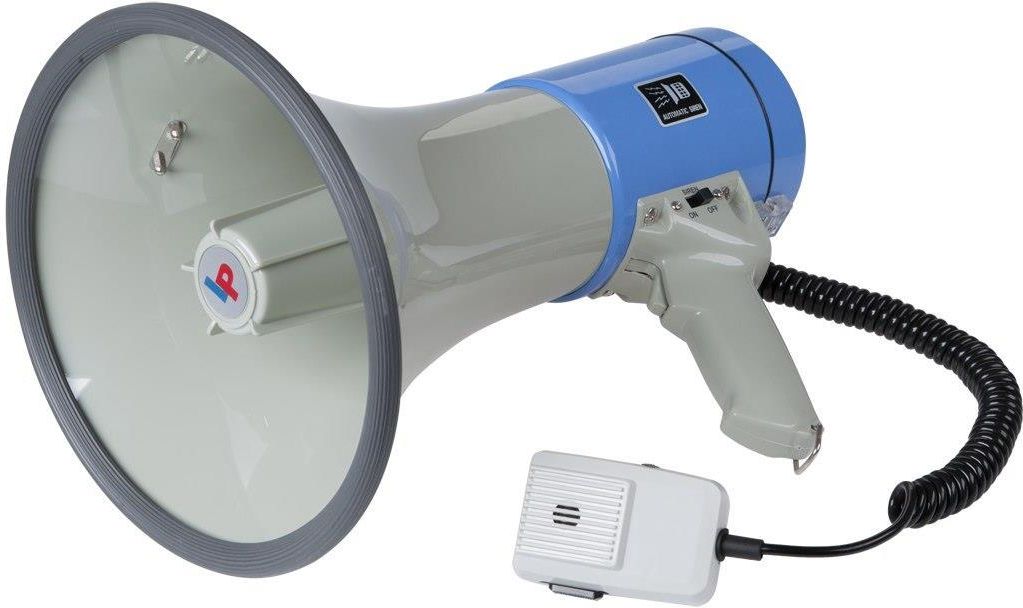 Megafon przenośny typu horn 25W syrenaPosiada uchwyty i tasiemkę dzięki której można nosić na ramieniu Dodatkowa funkcja to możliwość użycia jako syrenyMoc: 25W Średnica: 230mm Długość: 330mm Zasilanie: 8x R14