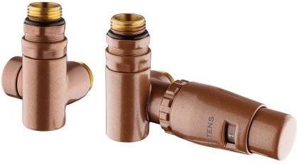 Zawory do grzejników łazienkowych znajdują zastosowanie w instalacjach z pionowymi kolektorami w systemie dwururowym. Zespolenie zaworu termostatycznego i odcinającego z trójnikiem pozwala na estetyczne i bezpośrednie zainstalowanie grzałki elektrycznej w grzejniku. Służą do wykorzystywania grzejnika jak o suszarki lub poza okresem grzewczym jak o dodatkowe źródło ciepła. Zestaw rozet służy do estetycznego maskowania rur instalacyjnych wychodzących ze ściany. w zestawie dostępne są złączki zaciskowe umożliwiające podłączenie do instalacji c.o. wykonanej z rur Cu 15x1 lub P ex 16x2. ciśnienie nominalne: 1 MPa czynnik grzewczy: woda ciśnienie próbne: 1,5 MPa temperatura pracy: 120°C regulacja temperatury: 8-30°C materiał mosiądz średnica wewn. rurki 20 mm średnica otworu wewn. rozety 22 mm wymiary rurki O22x1x80 mm wymiary rozety O45x22x8 mm wersja prawa kolor: miedź szczotkowana