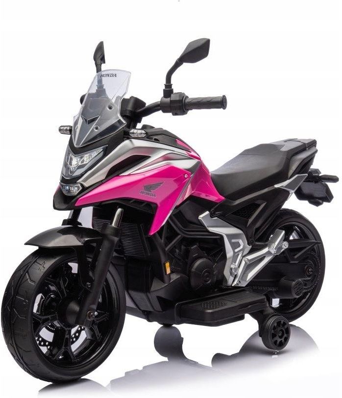 Motor Honda NC750X Różowy Symbol: PA.TR2306.ROZ Producent: RAMIZ Certyfikat: [CE] Specyfikacja Motor Honda NC750X Silnik 2x35W Akumulator 12V4,5Ah, Koła Koła plastikowe z gumowym bieżnikiem, Średnica :31 cm, Szerokość :10 cm, Biegi Wolny Start, Przód/tył Światła LED Przód Dodatkowe wyposażenie Dodatkowe kółka pomocnicze, Wyposażenie Dźwięki Dźwięki, MP3, AUX, USB Bluetooth Start Przycisk, Siedzenie 34x19 cm, Wymiary Rozmiar Pojazdu 103x41x74 cm, Waga Pojazdu 11kg, Rozmiar Kartonu 90x32,5x53 cm, Waga Kartonu 13,7 kg, Maksymalne Obciążenie 35 kg, Prześwit 10 cm, Wyposażenie Dodatkowe Instrukcja + Zestaw Montażowy, Ładowarka z diodą kontrolującą naładowanie , Galeria Posiada znak CE potwierdzający spełnienie wymagań dyrektywy Unii Europejskiej Zgodne z normą EN-71 - Bezpieczeństwo zabawek