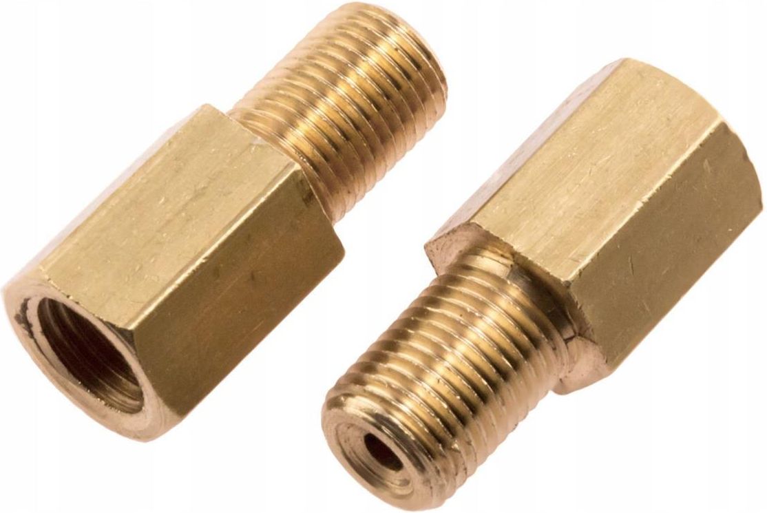 Łącznik do przewodów hamulcowych M10x1 Właściwości: stan: nowy materiał: mosiądz gwint A: wew.M10x1 gwint B: zew. M10x1 długość: 30 mm gniazda - SF "lejek" Cena podana na aukcji dotyczy jednej sztuki. Łącznik pozwala w sposób szybki i bezpieczny połączyć dwa odcinki przewodów sztywnych lub przewód elastyczny ze sztywnym. Stosowny najczęściej w sytuacji, gdy trzeba wstawić kawałek nowego przewodu w zamian za skorodowany lub dopasować połączenia ze względu na różne skoki gwintu w łączonych przewodach. Więcej łączników i redukcji w różnych konfiguracjach na pozostałych aukcjach.