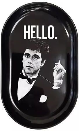Tacka Al Pacino Hello metalowa 13x8 cm Owalna tacka z nadrukiem Al Pacinbo Hello. Wykonana z metalu. Wymiary: 13x8 cm