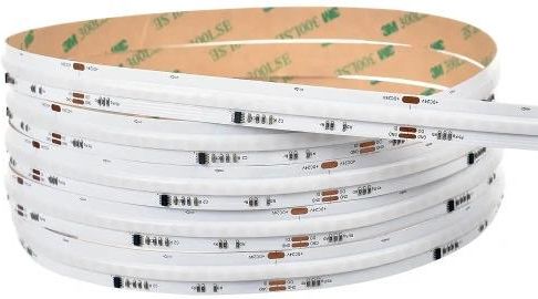 Odkryj rewolucyjne oświetlenie z taśmą LED cyfrową COB RGBW 840 chips/m 15W 24V. Ten innowacyjny model łączy zaawansowaną technologię adresowalnych diod LED z konstrukcją COB i matrycą RGB+W, co pozwala uzyskać niezrównaną jakość światła. Zapewnia ona płynne, jednolite światło bez efektu "kropkowania" (dot effect). Dzięki temu, że każdy piksel zawiera chipy (R, G, B oraz W), taśma oferuje zarówno bogatą paletę barw, jak i czyste, neutralne białe światło o barwie 4000K. Adresowalna taśma LED COB wykorzystuje setki miniaturowych diod LED umieszczonych blisko siebie i pokrytych warstwą luminoforu, co zapewnia idealnie ciągłą linię światła. W odróżnieniu od tradycyjnych taśm SMD, ta taśma LED eliminuje widoczne punkty świetlne, oferując subtelne i estetyczne oświetlenie. Dodatkowo, bardzo wysoki współczynnik oddawania barw (CRI) wynoszący Ra90 gwarantuje wierne i naturalne odwzorowanie kolorów oświetlanych przedmiotów. Poprzez zastosowanie technologii adresowalnych "diod LED" realizowanych przez układy scalone WS2814, cyfrowa taśma LED RGBW umożliwia indywidualne sterowanie każdym segmentem tzw."pixelem", co pozwala na tworzenie dynamicznych efektów świetlnych, takich jak płynące światło, efekt fali oraz wielu innych z precyzyjną kontrolą barw oraz kontrolą barwy białej neutralnej 4000K.