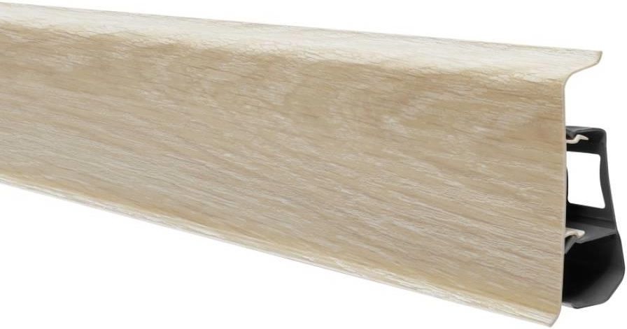 INDO Listwa Dąb Avalon 187 Nowoczesna listwa systemowa dostępna w bardzo szerokiej kolorystyce. Kolory oddające charakter drewna, kamienia, betonu jak również jednolite kolory pozwalają na stosowanie tej listwy zarówno do podłóg drewnianych, laminowanych jak i ceramiki. Opatentowana budowa listwy, która możliwa jest do zamontowania przy użyciu kleju, klasycznych kołków montażowych 6 mm, dwustronną taśmę mocującą oraz takerem. 26 mm szerokości z pewnością pozwoli ukryć znacznie więcej niż przewody antenowe a dedykowana puszka pozwoli na estetyczne wyprowadzenie kabli. INDO z pewnością zamaskuje szczeliny dylatacyjne podłóg ułożonych na dużych powierzchniach. W komplecie do listwy oferowane są dedykowane akcesoria znacząco przyspieszające montaż.INDO jedyna taka listwaListwa przypodłogowa Arbiton INDO to uniwersalne rozwiązanie, przeznaczone do estetycznego zwieńczenia podłogi. Jej główną zaletą jest unikalna szyna montażowa, dzięki której uzyskujemy efekt jednolitej powierzchni listwy.