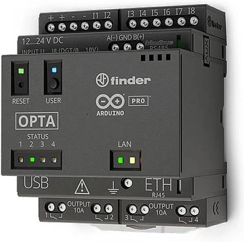 Arduino Opta WiFi - AFX00002 Opis Arduino Opta to zaawansowany, bezpieczny i łatwy w obsłudze sterownik mikro-PLC ułatwiający dodanie w aplikacjach przemysłowych możliwości oferowanych przez obszar Internetu Rzeczy (IoT). Pozwala rozwijać projekty automatyzujące systemy produkcyjne, jednocześnie korzystając z ekosystemu Arduino . Urządzenie obsługuje zarówno skrypty Arduino, jak i standardowe języki PLC, takie jak LD (Język Drabinkowy) i FBD (Diagram Bloków Funkcyjnych) , co czyni je idealnym narzędziem dla inżynierów PLC. Sterownik powstał we współpracy z firmą Finder, cenionym producentem urządzeń do automatyzacji przemysłowej i budowlanej. Głównym elementem Arduino Opta jest potężny układ STM32H747XI z dwoma rdzeniami Cortex-M7 i Cortex-M4 , który umożliwia użytkownikom pełną kontrolę w czasie rzeczywistym. Priorytetami przy tworzeniu urządzenia było jego bezpieczeństwo i trwałość. Opta wspiera zdalną aktualizacje oprogramowania OTA i gwarantuje bezpieczeństwo danych od poziomu sprzętu aż po chmurę, dzięki wbudowanemu zabezpieczeniu i zgodności ze standardem X.509. Wdrożenie w produkcji jest łatwe dzięki dużej ilości dostępnych bibliotek oprogramowania i skryptów Arduino, charakterystycznych dla Arduino Pro. Różnorodne opcje łączności umożliwiają wygodne monitorowanie za pomocą paneli w czasie rzeczywistym, wspierane przez intuicyjny Arduino Cloud lub usługi firm trzecich . Programowanie urządzenia jest proste dzięki środowisku Arduino PLC IDE. Można wybierać spośród pięciu języków programowania zdefiniowanych przez standard IEC 61131-3 (LD, FBD, SFC, ST i IL) i szybko tworzyć nowe aplikacje lub przenosić istniejące na platformę Opta. Opta umożliwia integrację solidnego i niezawodnego mikro-PLC z istniejącymi maszynami, urządzeniami i liniami produkcyjnymi , także w połączeniu z innymi elementami w modularnym i wszechstronnym ekosystemie Arduino. Jest produktem cechującym się wysoką jakością, powstałym we współpracy z uznanym producentem Finder, który ma na swoim koncie ponad 65 lat doświadczenia w dziedzinie komponentów elektromechanicznych i elektronicznych. To urządzenie doskonale sprawdza się w nawet najbardziej wymagających warunkach pracy w środowiskach przemysłowych. Wśród głównych zalet Arduino Opta można wymienić: Łatwe i szybkie tworzenie oprogramowania dzięki gotowym skryptom, samouczkom i bibliotekom Arduino. Wsparcie dla standardowych języków PLC zgodnych z normą IEC 61131-3. Integracja z magistralami poprzez Modbus TCP (Ethernet) i Modbus RTU (szeregowy RS485). Łączność IoT (Ethernet/Wi-Fi/Bluetooth® Low Energy). Monitorowanie zdalne w czasie rzeczywistym dzięki intuicyjnym panelom w Arduino Cloud lub usługom firm trzecich. Bezpieczeństwo na poziomie sprzętu dzięki wbudowanemu zabezpieczeniu i zgodności ze standardem X.509. Bezpieczne aktualizacje oprogramowania OTA i zarządzanie urządzeniem w Chmurze. Wysoka moc przełączania przekaźników (4 x 2,3 kW). Niezawodność dzięki certyfikatom przemysłowym oraz ekspertyzie firmy Finder w technologii przełączania. Łatwa instalacja z kompatybilnością z szyną DIN. Arduino Opta występuje w trzech wariantach , co pozwala dostosować go do różnych projektów. Wariant Opta RS485 posiada zintegrowane złącza Ethernet i USB-C oraz interfejs łączności RS485 Half-Duplex. Jeśli potrzebujesz łączności Wi-Fi/Bluetooth® Low Energy, najlepszym wyborem będzie Opta WiFi. Jeżeli zależy Ci tylko na łączności Ethernet i USB-C, warto zwrócić uwagę na najprostszy wariant, czyli wersję Opta Lite. Właściwości 8 konfigurowalnych wejść cyfrowych/analogowych (0-10 V) Procesor STM32H747XI Dual ARM Cortex: Rdzeń Cortex-M7 do 480 MHz Rdzeń Cortex-M4 do 240 MHz Interfejsy komunikacyjne: Ethernet 10/100 (TCP/IP lub Modbus TCP) USB-C RS485 Half-Dupelx Wi-Fi + Bluetooth® Low Energy Pamięć 1MB RAM 2 MB wewnętrznej pamięci Flash i 16 MB Flash QSPI Zegar RTC Synchronizacja NTP dostępna przez sieć Ethernet Stopień ochrony IP20 Wyjście: 4x przekaźniki (250 V AC - 10 A) Programowanie przez Arduino PLC IDE IEC-61131-3: Schemat drabinkowy (LD) Schemat bloków funkcyjnych (FBD) Sekwencyjny wykres funkcji (SFC) Tekst strukturalny (ST) Lista instrukcji (IL) Układ bezpieczeństwa: ATECC608B Napięcie zasilania: 12 do 24 V DC Temperatura pracy -20°C do +50°C Certyfikaty cULus, ENEC, CE