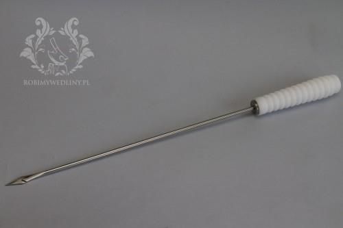 Igła masarska GRUBA 30 cm Długość igły: 30 cm Grubość igły: 5 mm Stosujemy do: aplikacji nici/przędzy wędliniarskiej do szynek oraz boczków