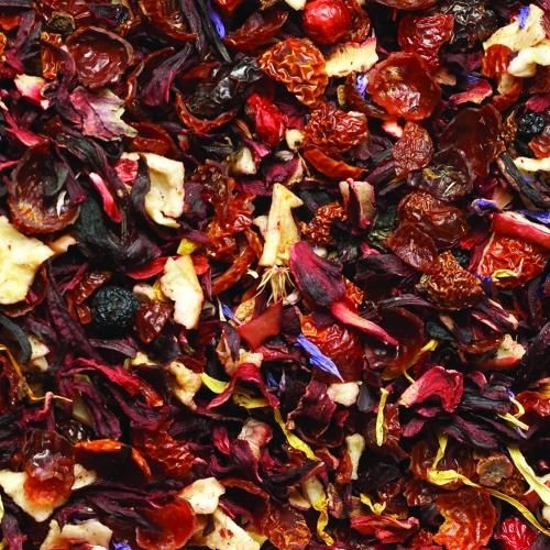 Tę herbatę można określić jako sałatkę z czerwonych owoców, gdzie każdy poszczególny owoc wnosi swoją własną słodycz i aromat. Pyszna zarówno gorąca, jak i zimna - umacnia ducha i duszę zimą, a także ożywia latem. Ponieważ nie zawiera kofeiny, nadaje się dla dzieci.Składniki: kwiat hibiskusa, …