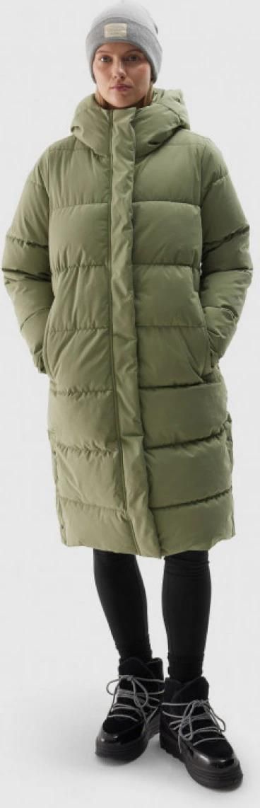 Damski płaszcz puchowy pikowany 4F 4FWAW24TDJAF476 - zielony Bierutów