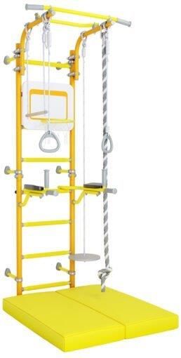 Drabinka gimnastyczna Next 1 Max Drabinka gimnastyczna Next-1 jest klasyczną drabinką montowaną przyściennie, która posiada zarówno regulowany drążek gimnastyczny, jak również możliwość regulowania na jakiej wysokości montujemy rękawki łączące drabinkę ze ścianą boczną. Drążek, którego wysokość możemy regulować, rośnie wraz z dzieckiem. Stalowe profile konstrukcji drabinki gimnastycznej Kometa osiągają wytrzymałość 200 kg podczas wykonywania testów fabrycznych. ELEMENTY ZESTAWU metalowa drabinka gimnastyczna drążek przesuwny poręcze zdejmowane huśtawka talerz kosz do koszykówki materac gimnastyczny 100x100x10 koła gimnastyczne lina gimnastyczna huśtawka gimnastyczna (trapez) WAZNE Zestaw przeznaczony dla dzieci od 3 lat i dorosłych Dopuszczalne obciążenie: 100 kg (drabinka, poręcze, drążek), 50 kg (akcesoria) Wysokość zestawu: 223 cm (do 275 cm z dostawką) Montaż: przyścienny Kolorystyka: żółto-niebieski, żółto-jasnozielony, żółto-srebrny Zalecenia producenta: dzieci od 3 do 7 lat powinny ćwiczyć tylko pod nadzorem rodziców