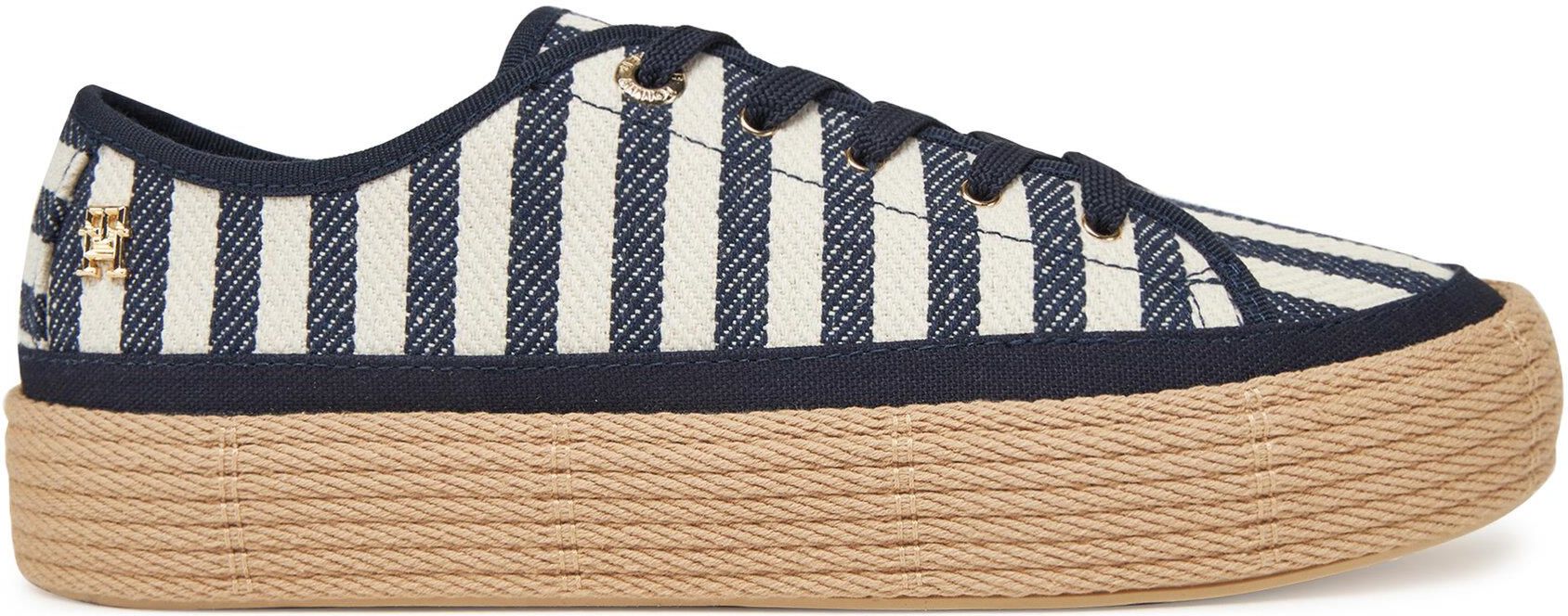 Dodaj do swojej garderoby nutę letniej elegancji dzięki espadrylom Tommy Hilfiger! Wykonane z wysokiej jakości materiału tekstylnego, te damskie buty łączą ponadczasowy styl z codziennym komfortem. Idealnie sprawdzą się podczas ciepłych dni, podkreślając Twoje casualowe i wakacyjne stylizacje. To nieodzowny wybór dla kobiet, ceniących klasyczne wzornictwo i niezawodną jakość. Wybierz espadryle, które staną się Twoim ulubionym dodatkiem na każdy letni spacer!
