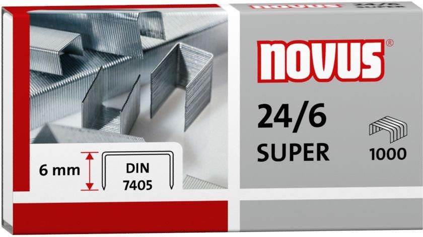 Zszywki Novus, ocynkowane w sposób przyjazny dla środowiska oraz precyzyjnie wykonane, spełniają wymogi DIN 7405. Zszywki stalowe do zszywaczy biurowych. Zszywki 24/6 SUPER są wykonane z nieco grubszego drutu, niż standardowe 24/6, dzięki temu polecane są szczególnie do zszywaczy typu Flat-Clinch …