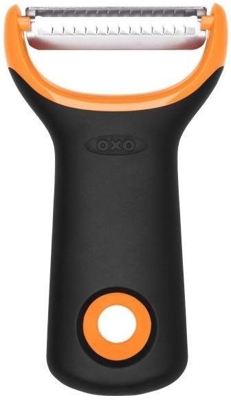 Obieraczka Oxo Good Grips posiada ząbkowane ostrze zwane julienne. Przy jego pomocy pokroisz warzywa i owoce w cienkie słupki, które świetnie sprawdzą się w sałatkach oraz przetworach. Paseczki mogą też udekorować i uatrakcyjnić codzienne posiłki np. kanapki czy makarony. Ostrze narzędzia jest wykonane ze stali nierdzewnej naturalnie pozbawionej szkodliwego BPA.