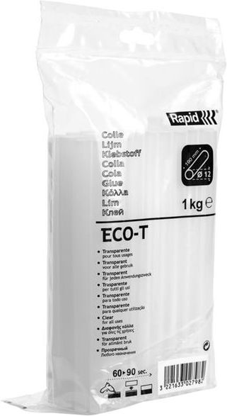RAPID KLEJ DO PISTOLETU NA GORĄCO WKŁADY 12mm 1KG NR KAT. 40302798 Klej uniwersalny ECO-T 1kg Zawiera min 40% wysokiej jakości żywicy węglowodorowej, dzieki czemu uzyskujemy dużą siłę wiązania oraz unikamy ryzyka znacznego spadku szybkości podawania kleju przez pistolet • żywica oraz pozostałe …
