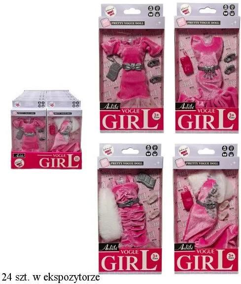 Zestaw ubranek i dodatków dla lalki. Zestaw składa się z eleganckiej różowej sukienki, butów, torebki. Różne wzory i elementy umożliwiają zabawę w stylizowanie. Zbierz wszystkie zestawy. Produkt występuje w kilku wersjach kolorystycznych, wybierany losowo. Cena dotyczy jednej sztuki. Zabawka przeznaczona dla dzieci od lat 3. Zabawka zapakowana w kartonowe pudełko. Podane wymiary są wymiarami opakowania. Wiek: 3+Producent/osoba odpowiedzialna za bezpieczeństwo produktuKUKURYKU Julia PogorzelskaEKONOMICZNA 442-271 CZĘSTOCHOWAoffice@kukuryku.co34 340 11 50