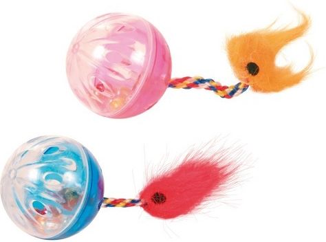 Zabawka dla kota. Mała piłeczka, która podczas turlania zachęcająco grzechocze, a dodatkowo ma kolorowy, pleciony ogonek, na którego końcu znajduje się miękkie, łaskoczące w nos piórko. Piłka-grzechotka firmy TRIXIE jest różnobarwna, a różne bodźce, wysyłane przez zabawkę zaintrygują każdego kota. …