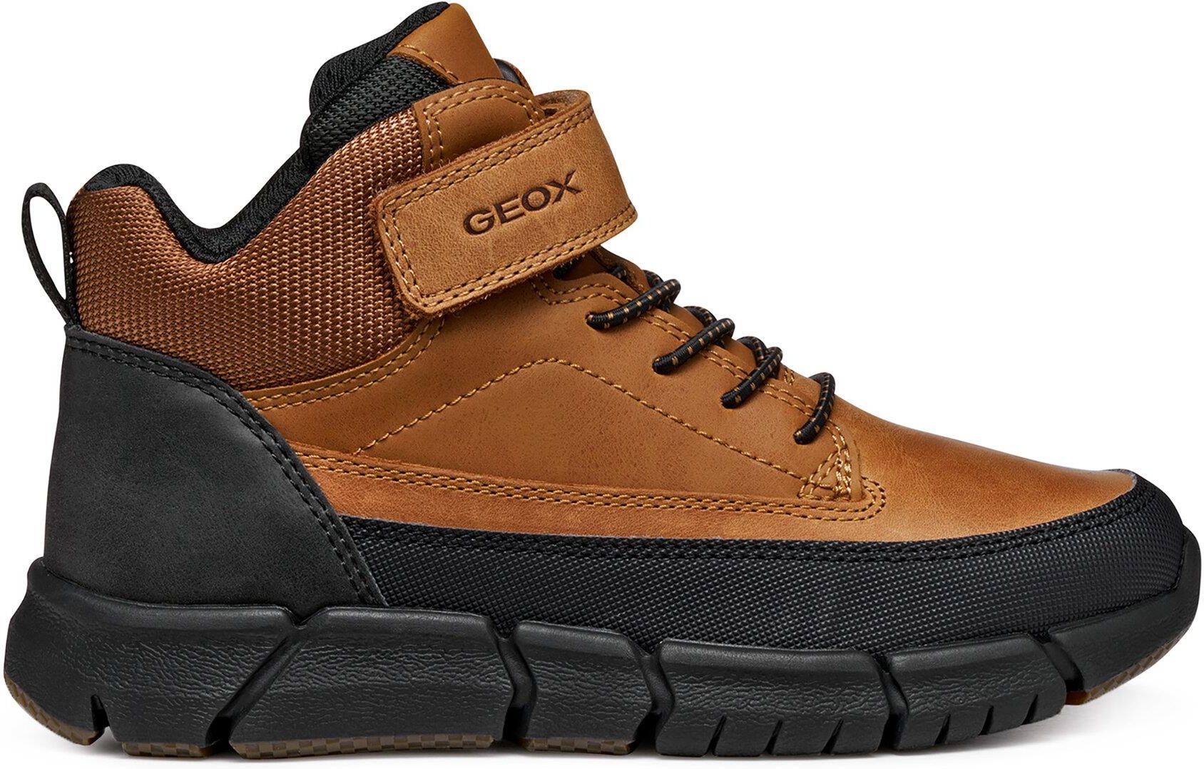 Buty Skórzane Dziecięce Trzewiki Geox J Flexyper Brown J369BA Brązowe Symbol: GE239-a Kolor: Brązowy / Czarny Rozmiar: 30 (20 cm) Wiecej rozmiarów i kolorów znajdziesz na pozostałych aukcjach. Opis produktu Dziecięce trzewiki Geox Flexyper B. A to lekkie i funkcjonalne obuwie idealne na codzienne przygody. Cholewka wykonana została z połączenia skóry naturalnej licowej i ekologicznej, co zapewnia trwałość i łatwość w pielęgnacji. Brak ocieplenia sprawia, że buty doskonale sprawdzą się w sezonie przejściowym, gwarantując komfort termiczny w umiarkowanych temperaturach. Technologia Geox Respira dba o odpowiednią cyrkulację powietrza, utrzymując stopy dziecka w suchości i zapewniając optymalną temperaturę przez cały dzień. Piankowa podeszwa EVA jest lekka, elastyczna i doskonale amortyzuje wstrząsy, co zwiększa komfort podczas biegania i zabaw. Praktyczne zapięcie na rzep ułatwia szybkie zakładanie i zdejmowanie butów, pozwalając dziecku na samodzielność. Wytrzymała, elastyczna podeszwa zewnętrzna zapewnia dobrą przyczepność i bezpieczeństwo na różnych nawierzchniach. Galeria zdjęć