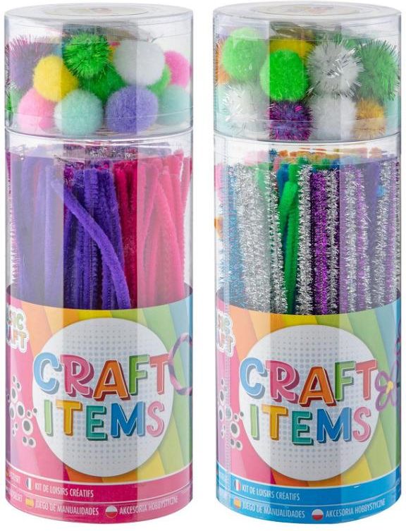 Zestaw do rękodzieła w przezroczystej tubie. Różne kolory włochatych drucików i pomponów do samodzielnego tworzenia zabawnych figurek. Dzięki dołączonym oczom możesz uzupełnić swoje figurki.