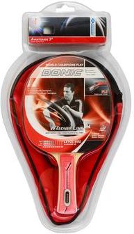 Zestaw do tenisa stołowego firmy Donic, składający się z rakietki serii 600 Waldner, trzech piłeczek Avantgarde 3* i pokrowca. Parametry rakietki: grubość gąbki: 1,8 mm, prędkość: 6/10, rotacja: 6/10, kontrola: 7/10. System PLS ( przeniesienie środka ciężkości w górę rakietki, dzięki czemu zwiększa się moc i prędkość przy zachowaniu doskonałego czucia )