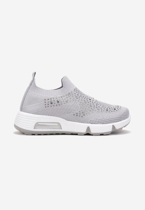 JASNOSZARE WSUWANE BUTY DZIEWCZĘCE Z CYRKONIAMI NA ELASTYCZNEJ CHOLEWCE ROZMIAR 26 Bieżuń