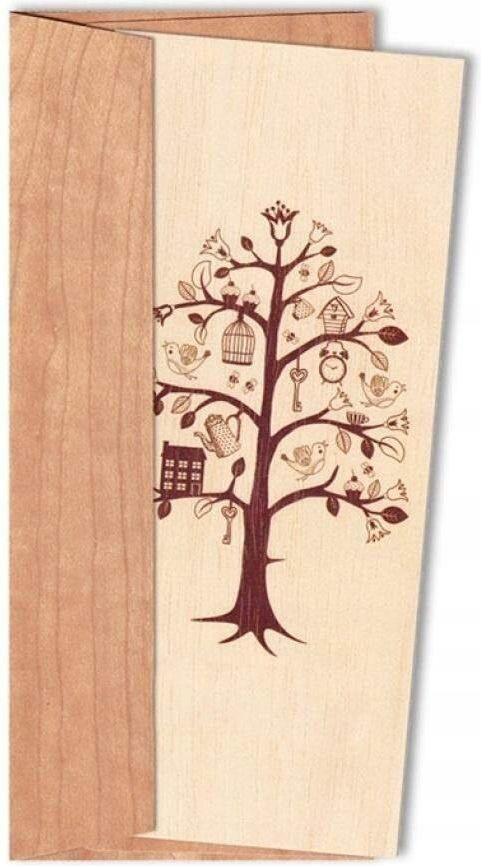 Karnet drewniany DL z drewnianą kopertą Drzewo Bieżuń