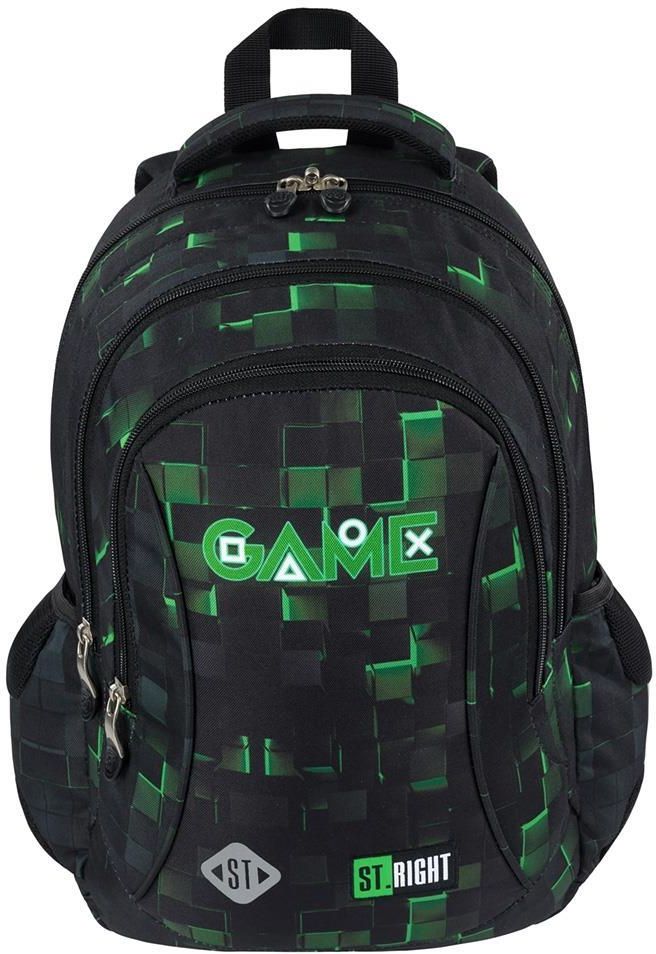 St.Right Plecak Szkolny BP-77 Green Game 681516 Produkty marki St.Right wyróżniają się doskonałą jakością wykonania, dopracowanymi w każdym szczególe detalami i trwałością. Właścicielem marki jest polska firma St. Majewski (producent między innymi Bambino). Trzykomorowy plecak szkolny uszyty z …